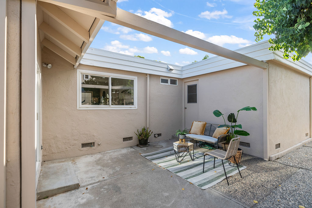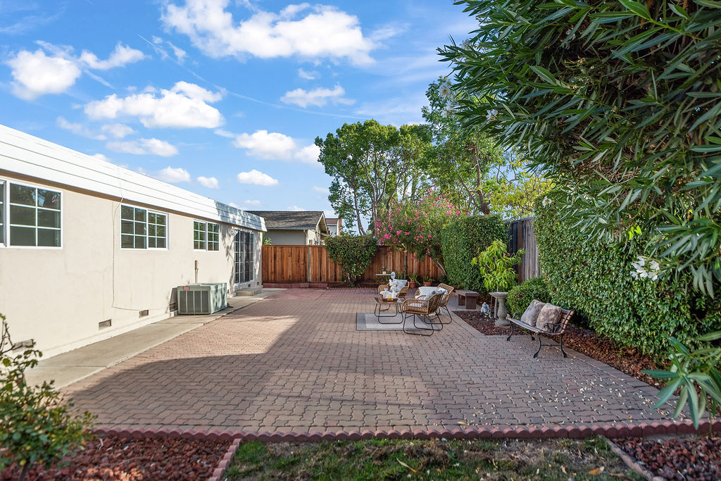 Outside, enjoy serene private front courtyard and expansive backyard shaded by mature trees! Plus, three sheds provide added utility and storage. Prime central location near major thoroughfares, public parks like the 52-acre Central Park, large tech employers, and more!
